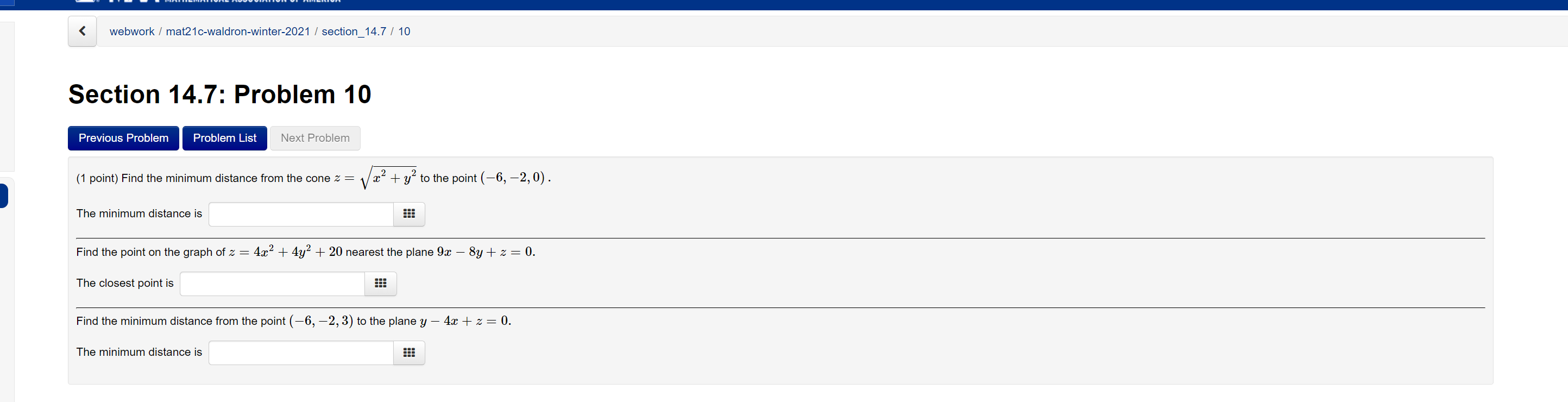 Solved Find The Minimum Distance From The Cone Chegg Com
